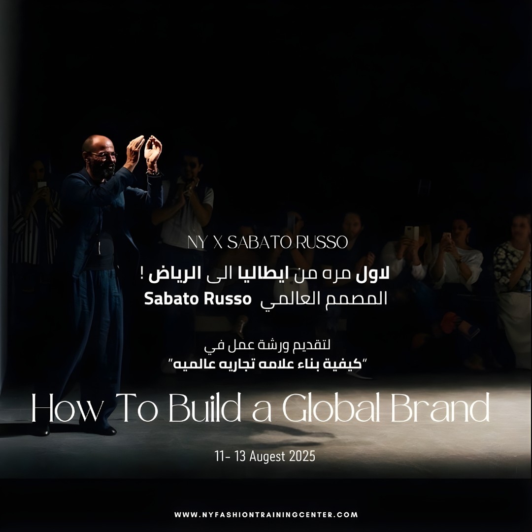 ورشة استثنائية مع المصمم الإيطالي العالمي Sabato Russo لبناء علامة تجارية عالمية، تشمل استراتيجيات الإبداع، التسويق الدولي، التخطيط للـ collections، وإدارة فرق العمل.